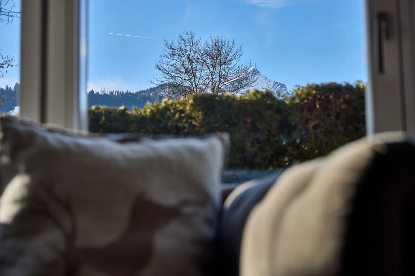 A large, open-plan living room with living area and spacious dining table with room for 8 people combines the ideal place to gather with a modern, fully equipped kitchen where you can realize your culinary ideas. An inviting living area invites you to put your feet up. A large flat-screen smart TV provides the necessary entertainment when needed. An electric fireplace spreads cosy ambience even on cold days. The wooden floor and the furniture in natural materials combine a certain alpine charm and cosiness with modern design. Floor-to-ceiling windows let plenty of daylight into the rooms and allow direct access to the large terrace.