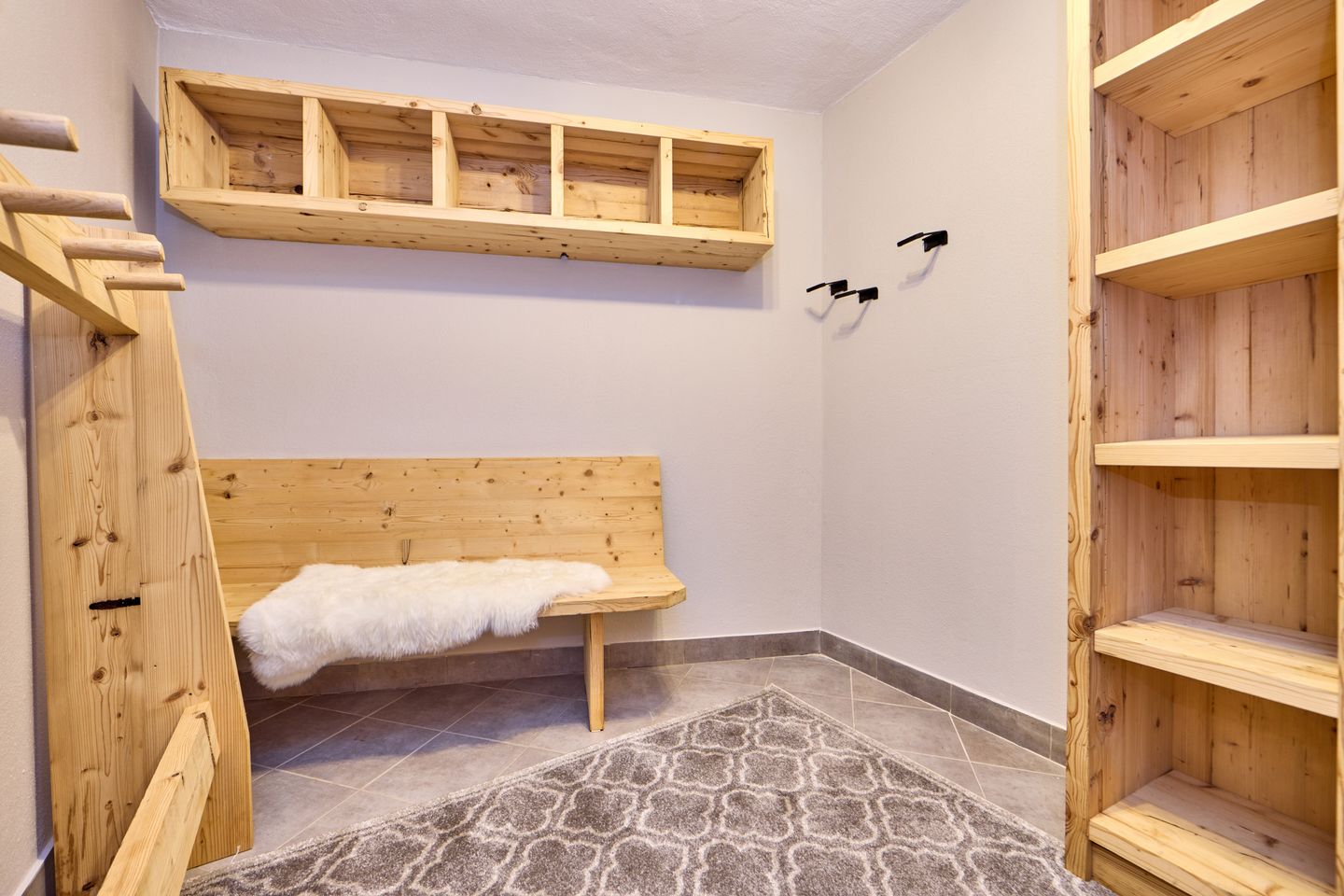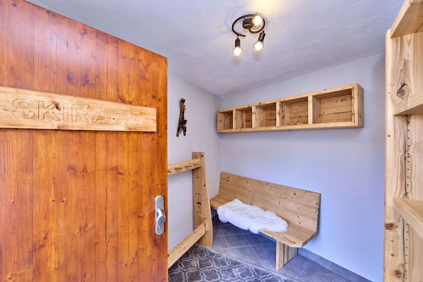 The accommodation has two outdoor parking spaces where you can park your vehicles. A separate, lockable drying room for bicycles and ski equipment is accessible via the terrace and can also be used.