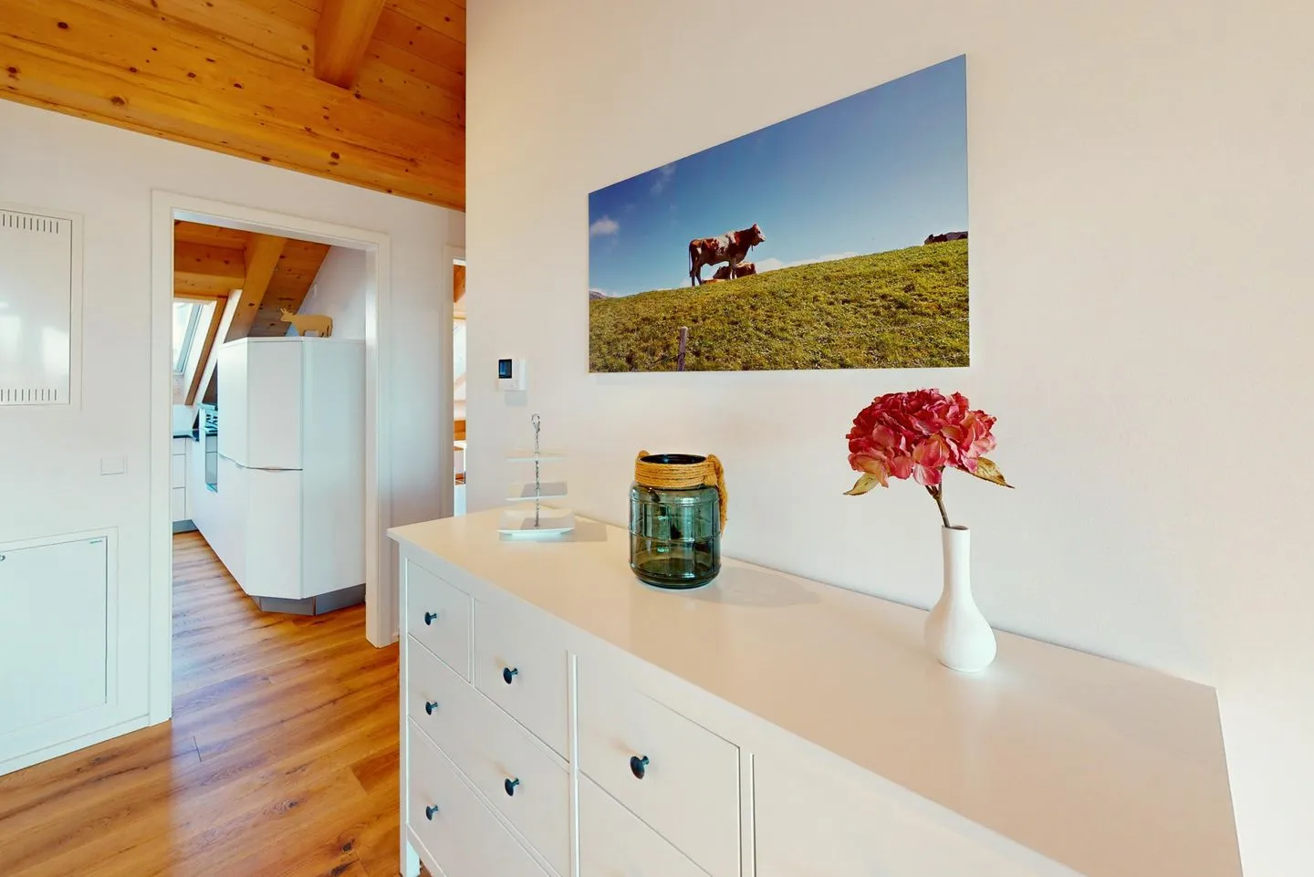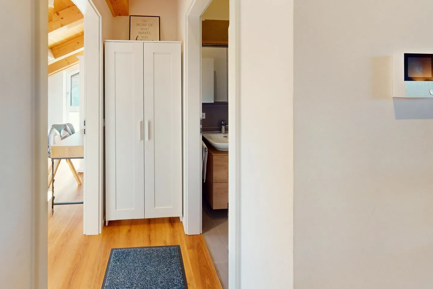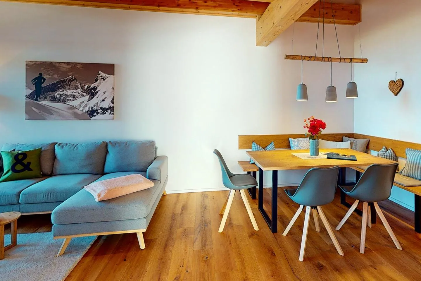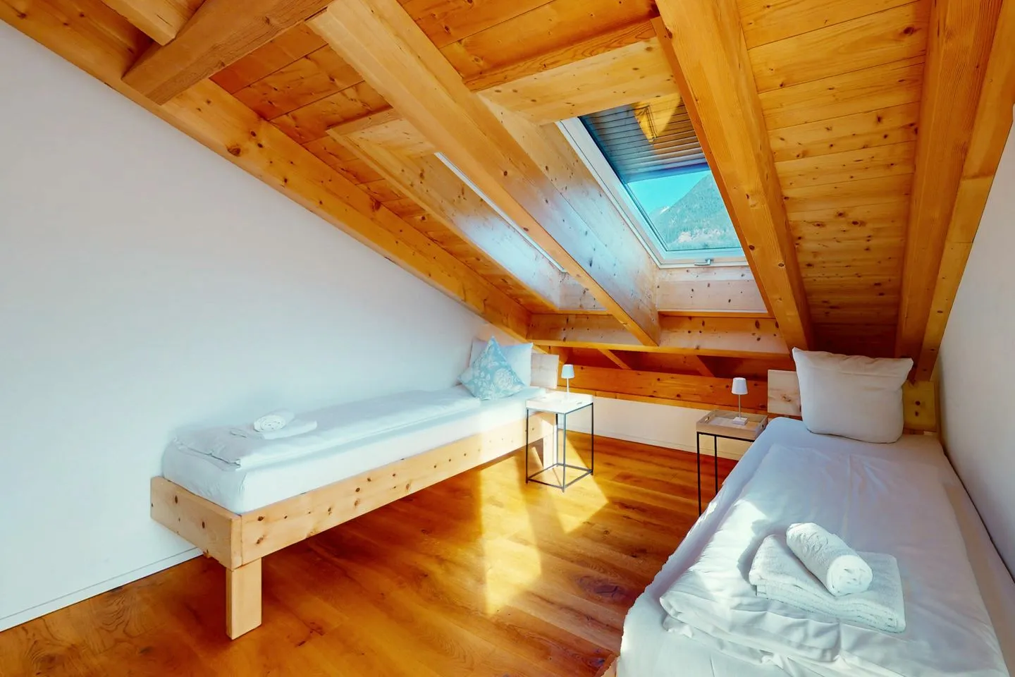 The apartment can accommodate up to four guests and has two cozy bedrooms. The first bedroom in particular has a real highlight in store for you: a lovingly handcrafted double bed made of Swiss stone pine. The subtle, natural scent of this wood promotes calm and comfort, has been proven to improve sleep quality, and ensures a balanced indoor climate. Studies show that Swiss pine wood lowers the heart rate, reduces stress, and promotes regeneration during sleep – perfect for anyone who really wants to unwind on vacation.
